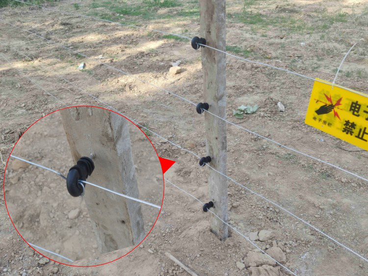 下面我們就來簡單說下畜牧電子圍欄的使用方式。我們隻需要在防護的農田或者牲畜養殖場的四周樹立一些木樁,然後把鐵絲或者專用的畜牧電子圍欄導電繩固定在木樁上形成一個防護電網